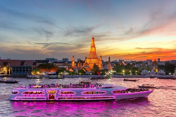 Experience the magic of Bangkok by night aboard the luxurious Chao Phraya Princess Dinner Cruise — a perfect blend of stunning views, gourmet dining, and live entertainment.