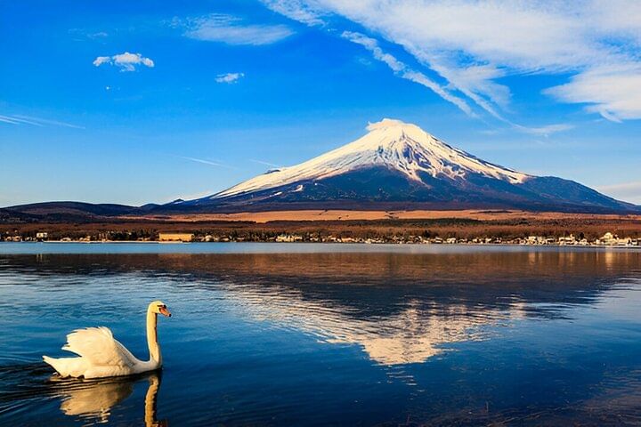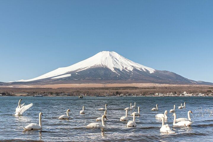 Highlights include panoramic views from Lake Kawaguchi, the swan-filled shores of Lake Yamanaka, the traditional thatched village of Iyashi no Sato near Lake Saiko, and the quiet, untouched beauty of Lakes Shoji and Motosu. You’ll also have opportunities to explore lava caves, enjoy local food, and take photos of Fuji’s reflection on the lakes.